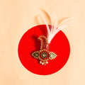 Hand carved and assembled from copper alloy, micro-plated with gold, and infused with semi-precious Kundan stones.