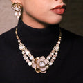 Hand carved and assembled from copper alloy, micro-plated with gold, and infused with semi-precious Polki stones.